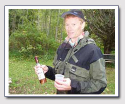 At my arrival I was picked up in the Mont Joli airport, and the next morning we went fishing at six o'clock. It took Gilbert 10 minutes to find the first salmon with an instant of brain damaged, a 66 cm Grisle, after I had returned it to the river, I was for the first time in my life served Rose vine before breakfast, Gilbert served half a bottle of No Kill vine a souvenir from the Salmon Guides Society and recognized by Atlantic Salmon Federation to promote the Return to River concept. Later the same morning I returned a 80 cm blank salmon to the river, I was surprised to get a blank salmon in September, but it is not unusual, I touch totally ten salmons a this trip, three of them was blank and three was +10 kg salmons. The next day Gilbert took me to the Matapedia river, there have some of the biggest salmons in the area, I did not get any of the big ones but another Grisle. At my last fishing day Gilbert took me to the Cap Chat river, there is a beautiful river in the wilderness with unforgettable landscapes.